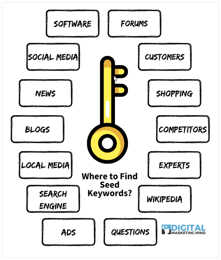 நீங்கள் விதை முக்கிய வார்த்தைகளை செய்ய விரும்பினால், நீங்கள் எங்கிருந்தும் தொடங்கலாம், ஆனால் சில பரிந்துரைக்கப்பட்ட இடங்களில் பின்வருமாறு: